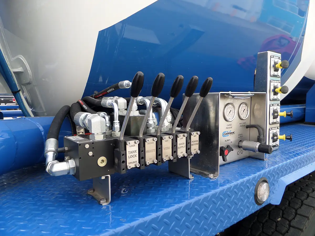 - 6” Betts discharge valve c/w aluminum cap (Center) All rear valves heated, air and equipped with flip style valve controls