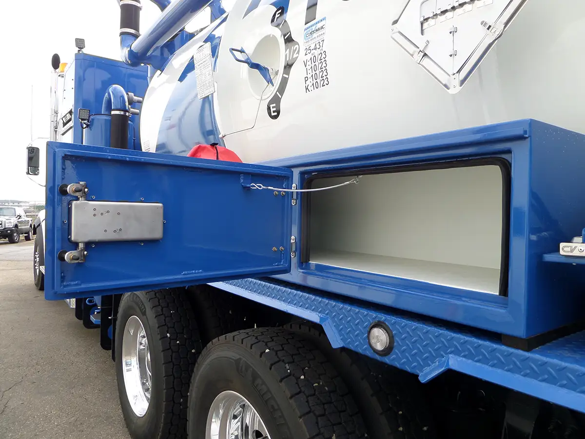 - Entire tank and body of vacuum system will be sandblasted, primed and painted up to 2 colors