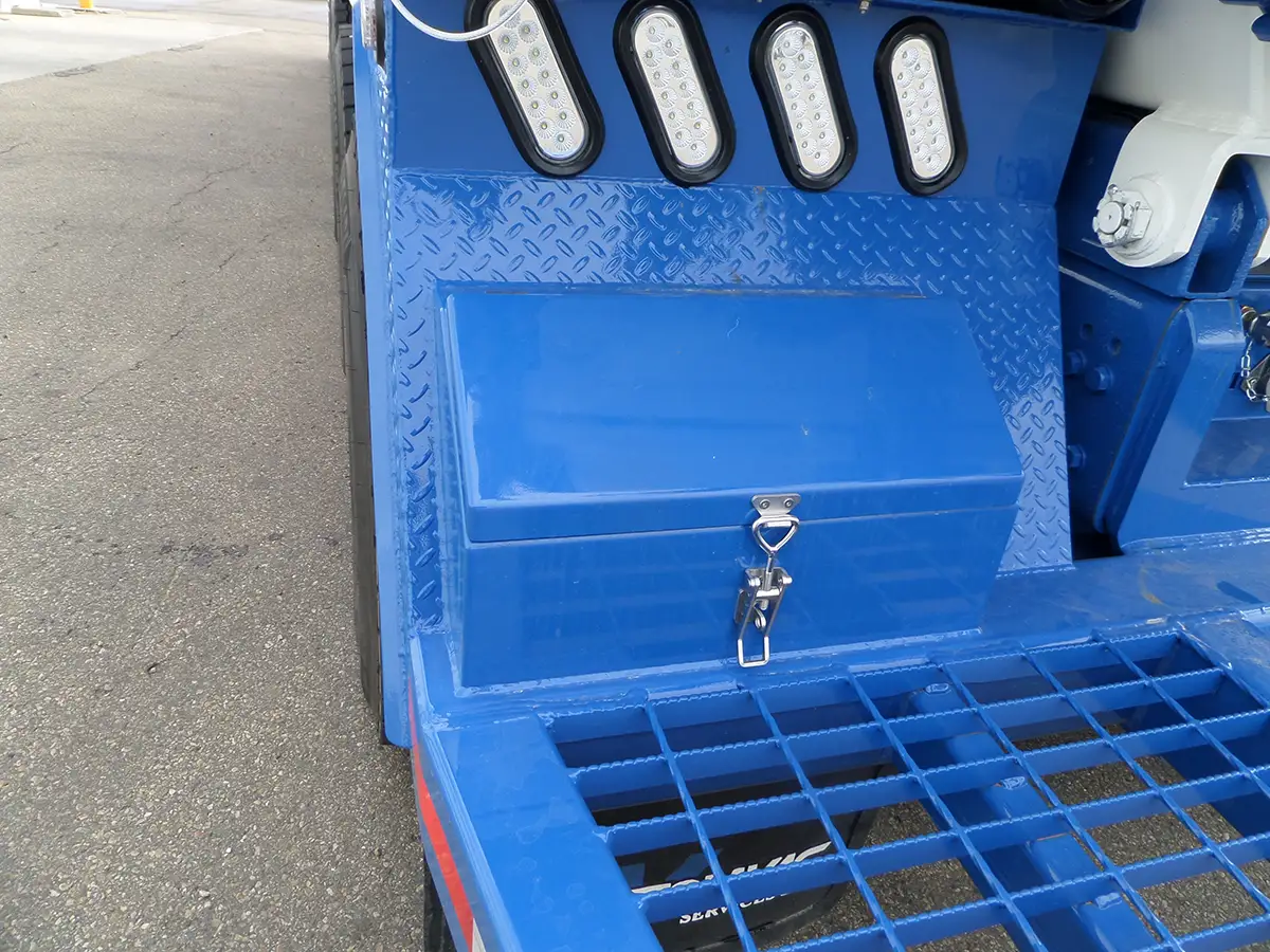 - Full length 1/8” checker plate hose tray/fender assembly with heavy duty outrigger supports & 1-1/4” steel tubing handrails, close in plates