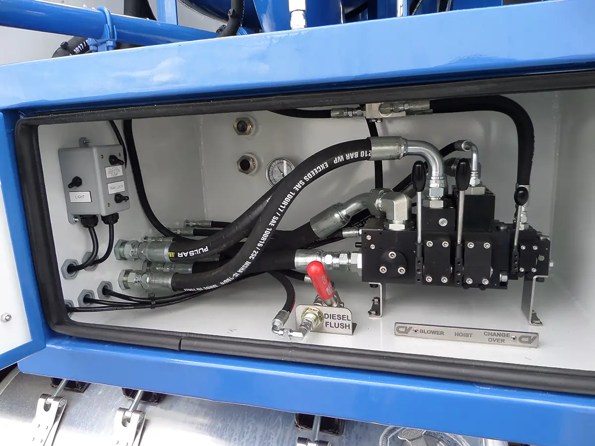 - All rear valves heated, air actuated and equipped with flip style valve controls
